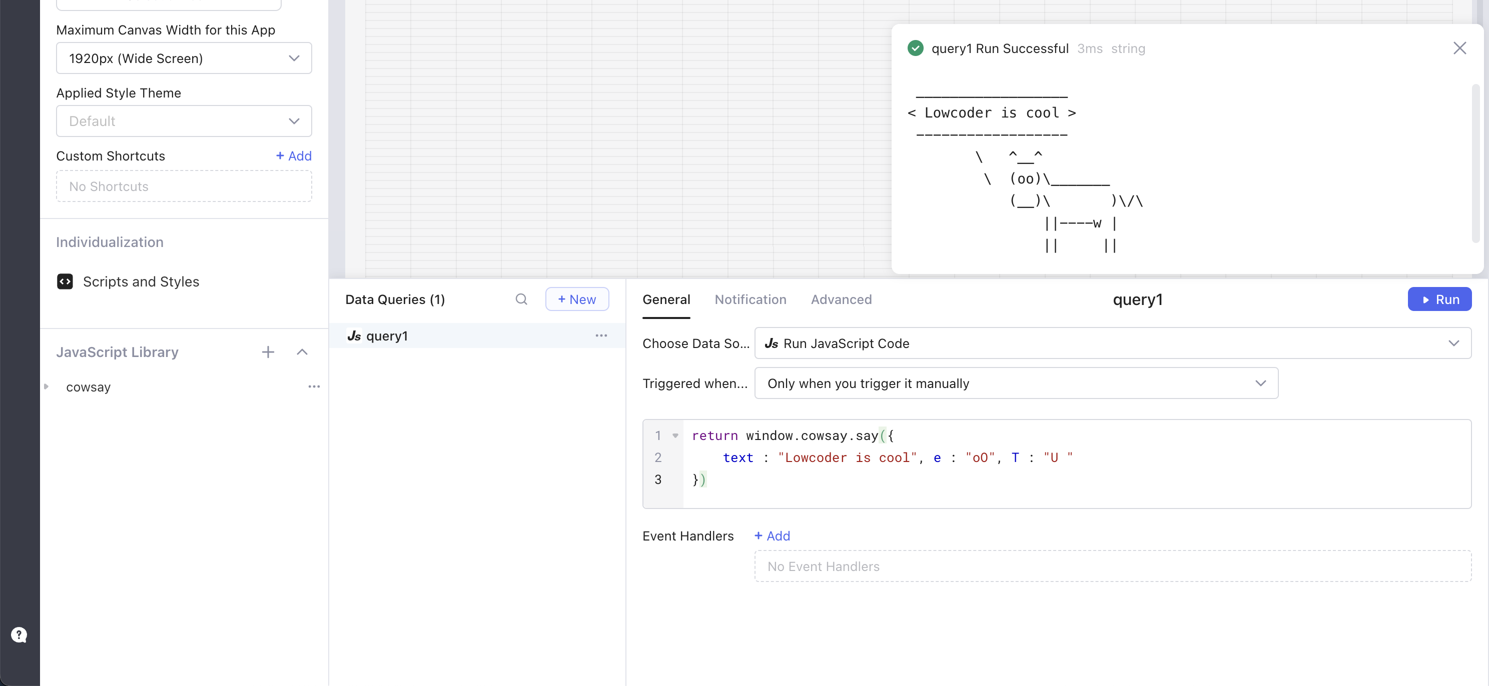 Lowcoder supports setting up preloaded JavaScript and libraries, which can either be imported for individual apps or the whole workspace.
