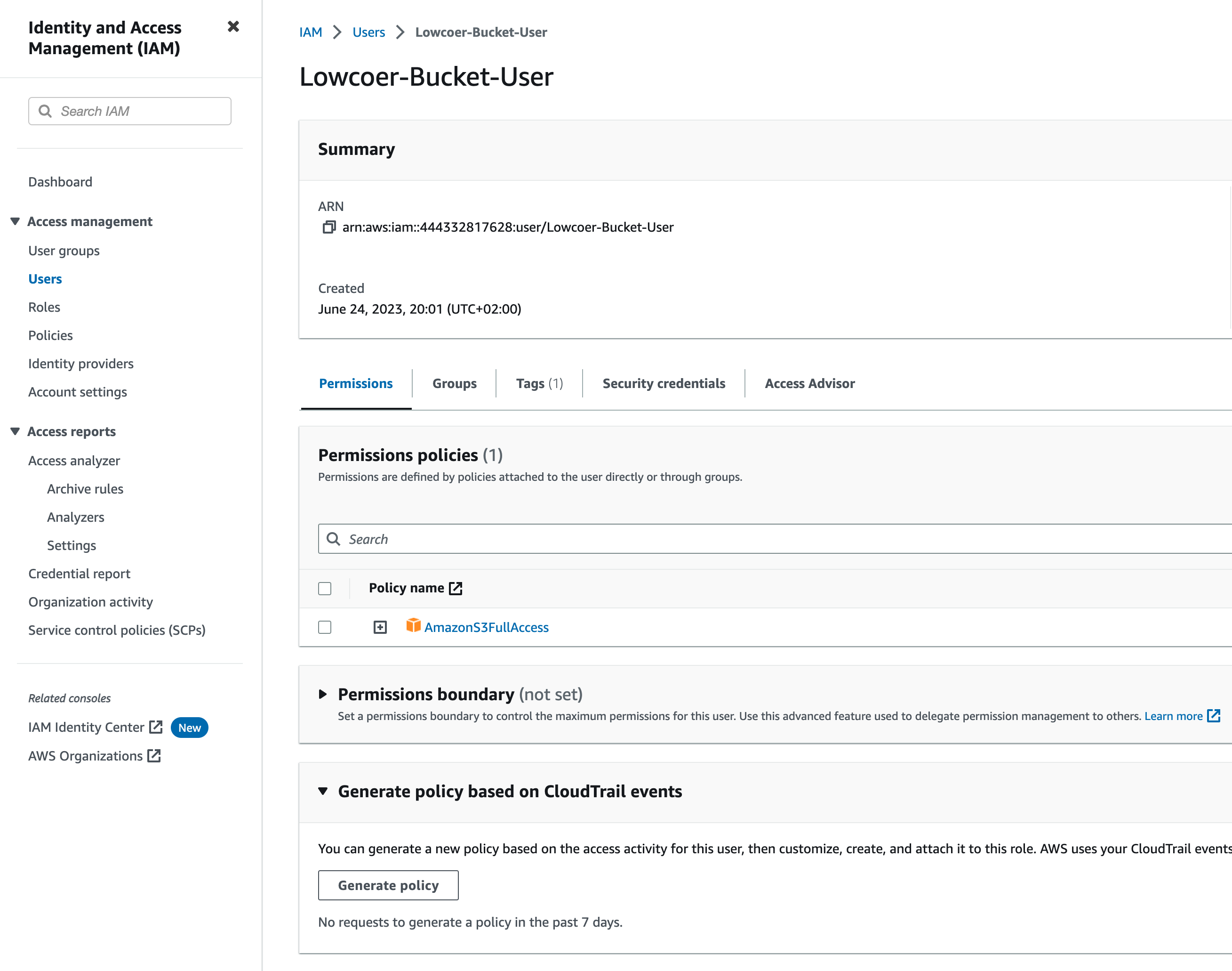 Create a Amazon AWS User, give with a Policy the desired Access for your Buckets
