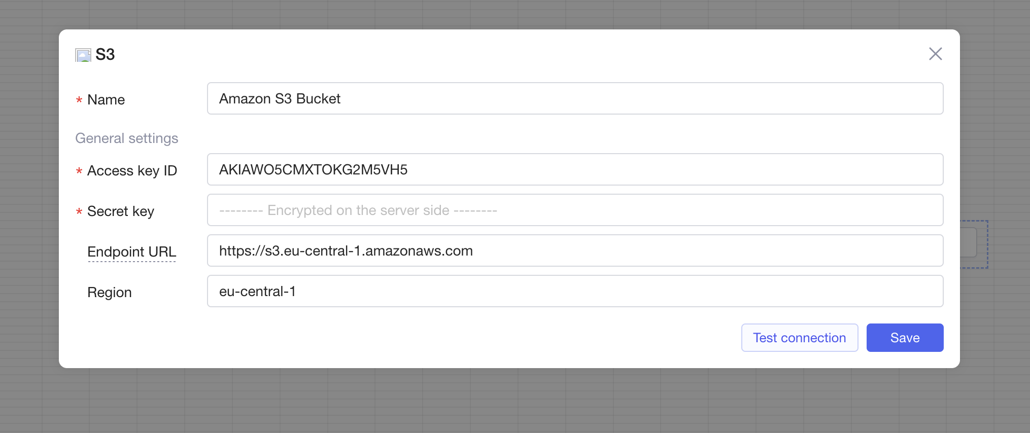 With the S3 Datasource Plugin, you can connect to your Amazon S3 Storage to upload and manage Files.