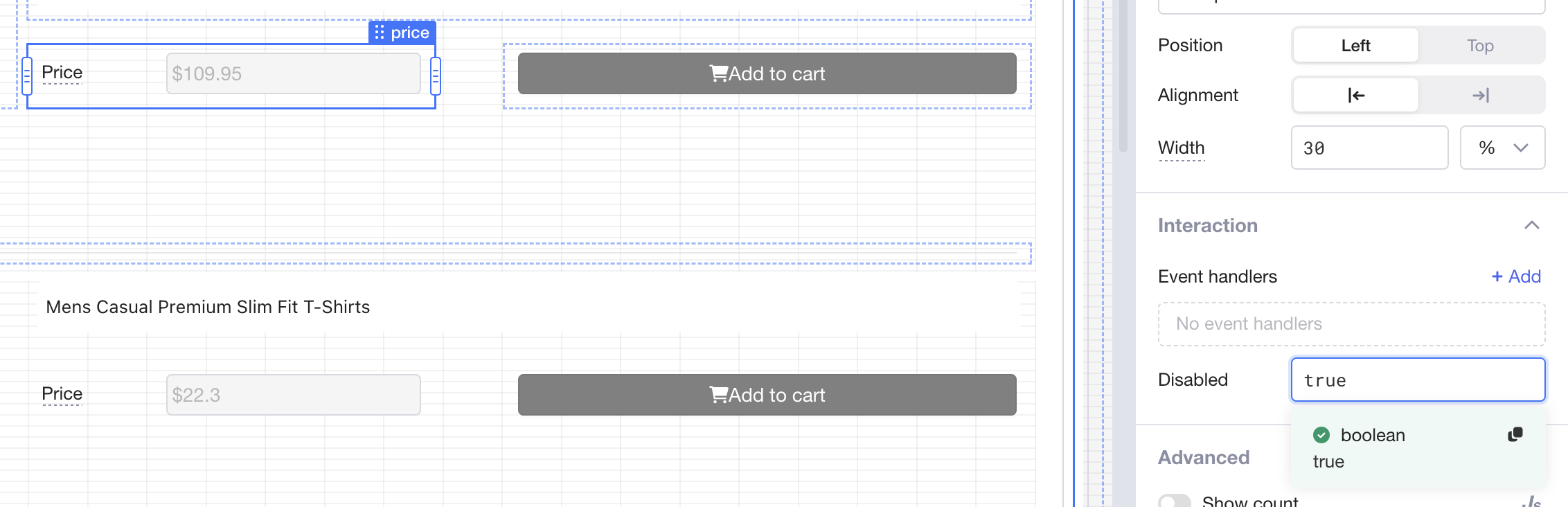 {% hint style="info" %} In Lowcoder v2.0.0 the fields "Hidden" and "Disabled" are unfortunately at different places in the Properties Panel across the components. We will fix and order this in a future version. {% endhint %}