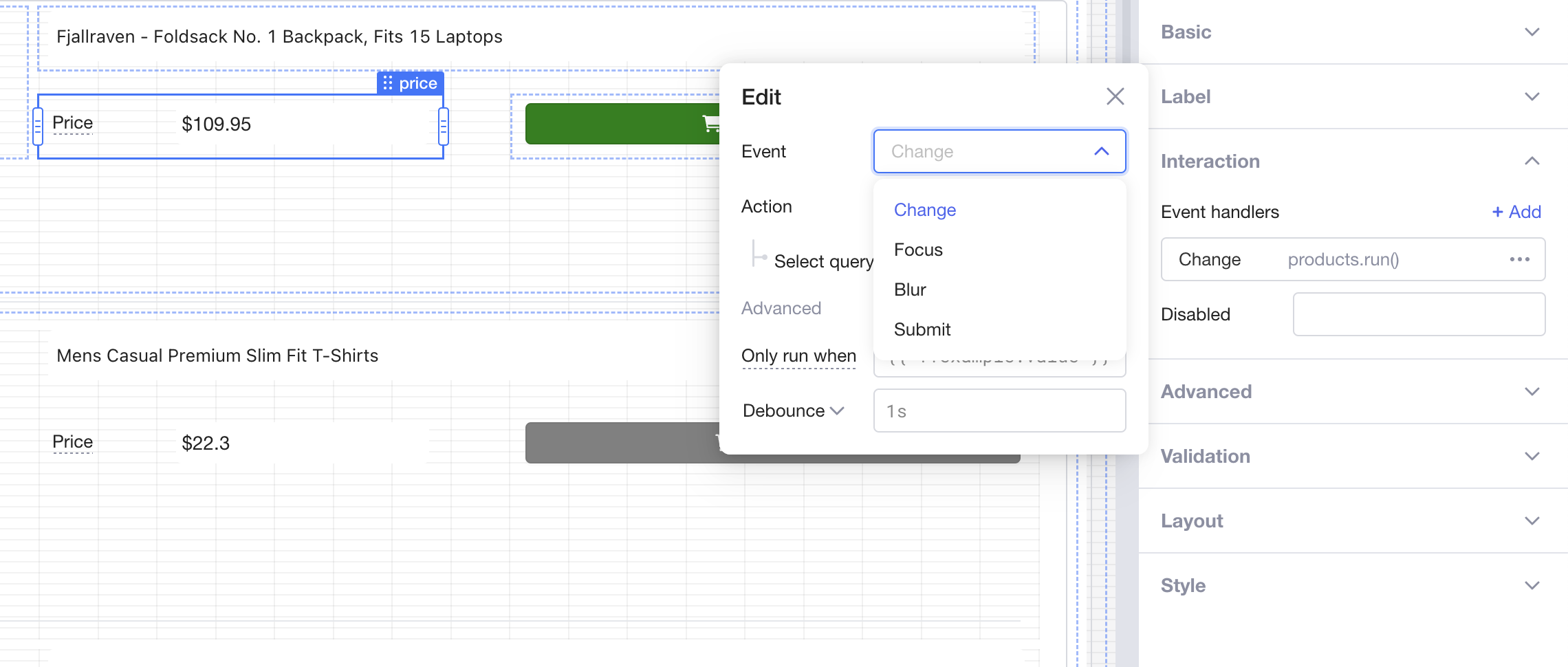 One of the powerful concepts of Lowcoder are the Event handlers. Based on User interaction almost every Component can release Events, on which you can react with different actions.
